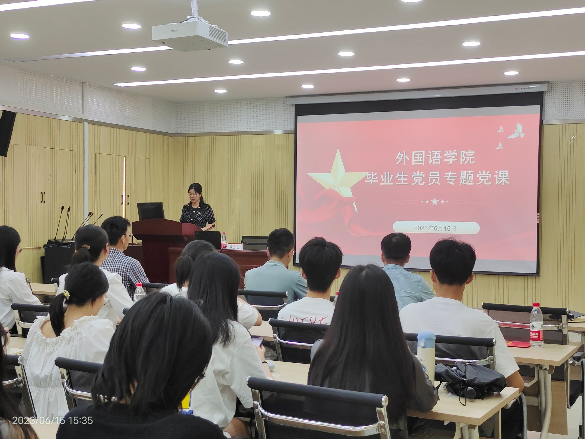 胡晶晶总结道:“此次专题党课生动且有教育意义,在此我对大家提出三点‘希望’:一是希望在座的毕业生党员们能够不忘初心,牢记共产党员的第一身份,无论此后身处何方,处处体现党员先锋模范作用;二是希望在座的入党积极分子们通过聆听党课,能够切实提高党性修养同时向优秀的毕业生党员看齐,以实际行动争取早日加入党组织;三是希望所有老师和同学们都能在今后的人生路上敢于挑重担,勇于担大任!”