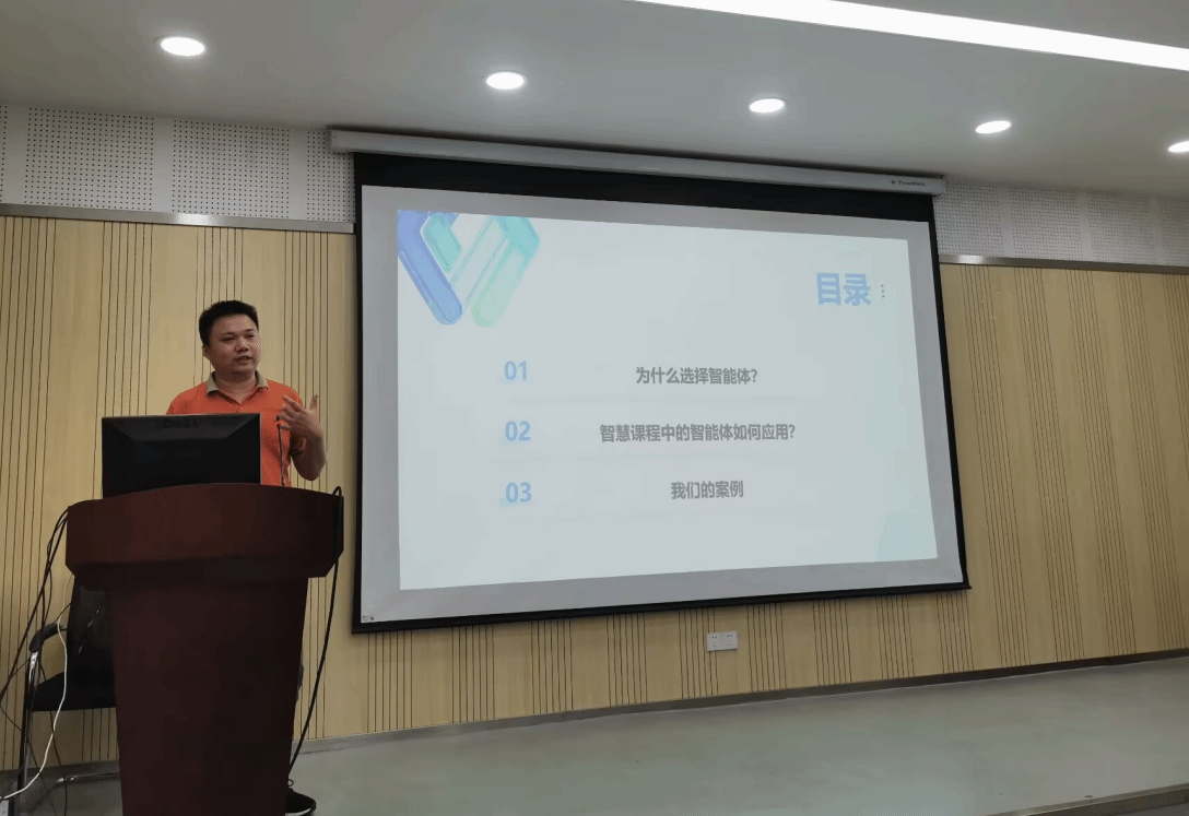 工作坊由yl6776永利集团官网副经理陈尧开场致辞,强调数字化转型是外语教育高质量发展的必由之路。智慧树网金课建设咨询师姜舟以《智启AI教育工坊》为主题,系统阐释了新形态智慧课程(智能体课程)的三大核心特征:(1)动态交互:基于学习者行为数据的实时反馈机制;(2)智能适配:通过算法实现个性化学习路径规划;(3)闭环优化:形成教学-评估-改进的螺旋上升体系。姜舟结合复旦大学AI+英语写作智能批改系统等案例,指出智能体课程正在重构教与学的生态闭环。