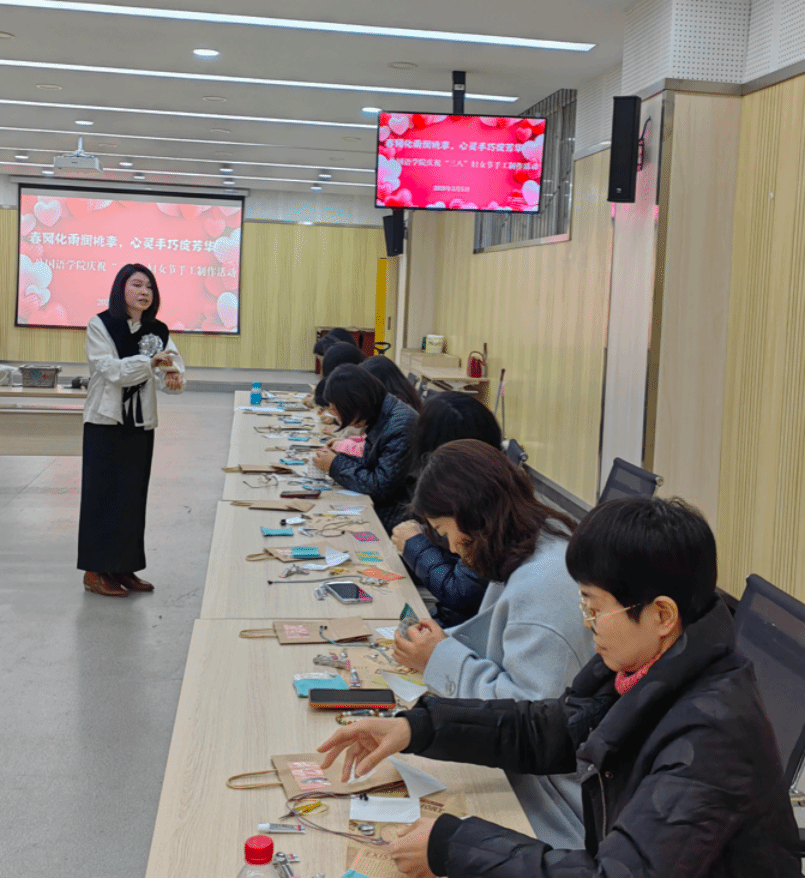 春风送暖,万象更新。为庆祝2026年“三八”国际劳动妇女节,丰富女教职工的精神文化生活,3月5日下午,我院精心组织了一场“非遗新中式手作实践”主题活动。活动以传承非遗文化、体验传统工艺为主题,吸引了众多女教职工踊跃参与。