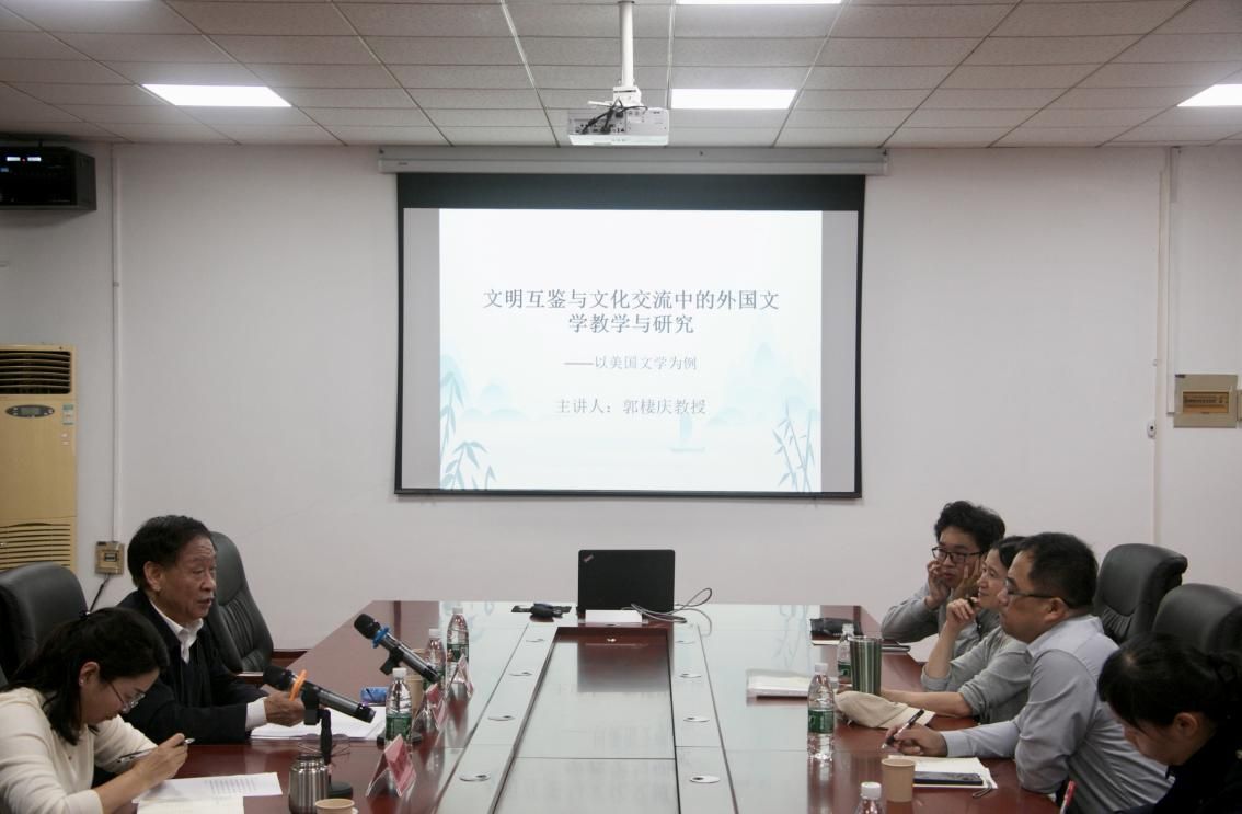 讲座中,郭棲庆教授结合自身多年教学研究经验,以美国文学为切入点,强调外国文学在文明互鉴中的核心作用。他指出,外国文学是“另类的历史与思想史”,如德莱塞的《嘉莉妹妹》、菲茨杰拉德的《了不起的盖茨比》等作品,既反映社会现实,更承载人文价值,是连接多元文明的重要桥梁。面对当前人文学科面临的“边缘化”挑战,他强调:“经济建设可以立竿见影,而意识形态与人文素养的培育,则需要一代又一代人的坚守,”必须重视人文学科建设,因为它将对社会产生深远影响。