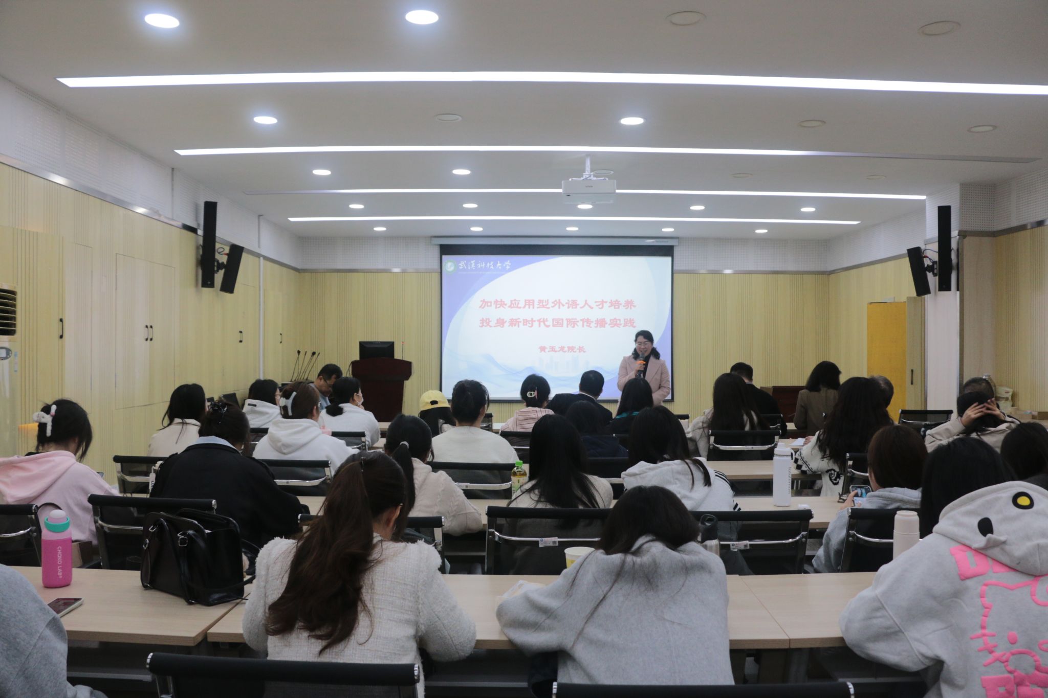 (通讯员黄琪 姚刚)为对接国家对外传播战略需求,探索外语学科发展新方向。11月11日下午,公司特邀中国翻译协会副会长、中国外文局翻译院经理黄玉龙教授于黄家湖校区教四楼42305会议室,以“加快应用型外语人才培养,投身新时代国际传播实践”为主题开展外语论坛。公司经理李金云、副经理龙在波、MTI教育中心常务副主任姚刚及部分教师代表,与2024级、2025级全体研究生共同参与。本次论坛由经理李金云主持。